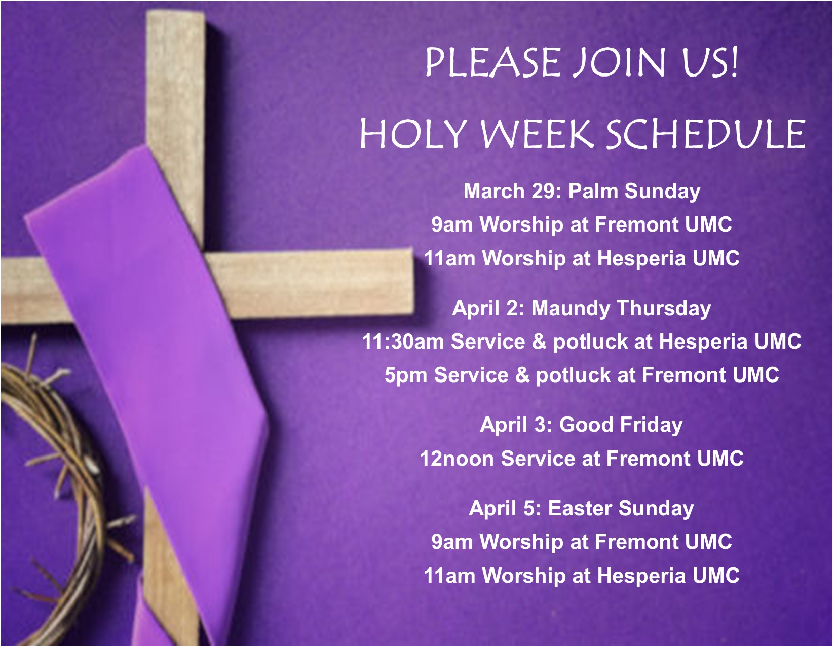 ![]() Join us on our FaceBook page, Fremont United Methodist Church,